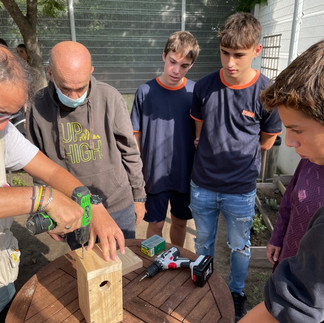 Amb algunes persones han compartit temps a l'hort, tot plantant i regant espais verds, però també aprenent formes de treballar amb flors , llavors i arbres de la mà de persones que ja de ben petites van treballar al camp. També han compartit com construïm cases per a ocells i menjadores per a ocells a la nostra escola i els han ensenyat que ,amb fustes de palets , es poden fer moltes coses. Han ajudat a fer deures de matemàtiques i llengua que ajuda als usuaris del Sociosanitari a treballar cognitivament. Han vist i participat en sessions de tai-txi que els ha ajudat a veure la importància que té la pràctica esportiva i com millora la qualitat de vida quan som grans. O simplement, han escoltat vivències personals que són autèntiques lliçons de vida.