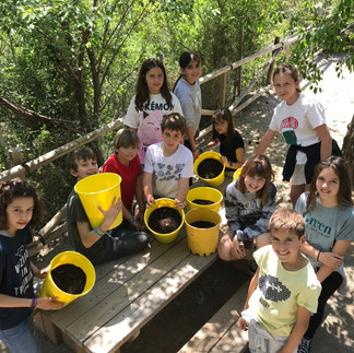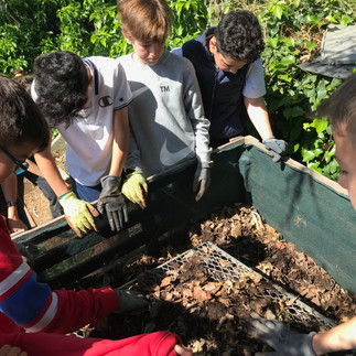La setmana del 2 al 9 de maig, tot coincidint amb la International Compost Awareness Week , l'alumnat de 5è i 6è que gestiona una planta de compostatge ha treballat de valent per a buidar-les. Ara fa uns mesos que van començar a treballar-les. Durant aquest temps, han anat afegint fulles provinents dels arbres de l'escola així com matèria orgànica que el Jose, el cuiner de l'escola , i el seu equip de la cuina preparen en bosses per a que l'alumnat la faci servir. Amb unes eines que tenen per nom tirabuixons han anat remenant tot el material de dins de les compostadores.