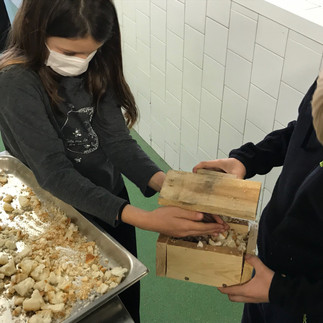 Durant setmanes , alumnat de 3r de primària ha estat ben enfeinat. Han construït menjadores per ocells amb fustes de palets reutilitzats que cedeix Envialia al projecte Fent Verd. Ho han fet per grups i fent servir dos trepants ( cedits per Bb activities ), un per fer forats i un altre per posar-hi cargols. I ho han fet molt bé. Quan han acabat, han anat a la cuina i el Jose, el cuiner de l'Escola Thau Barcelona, els ha donat menjar per posar a les menjadores.