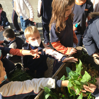 Fa poc més de dos mesos, l'alumnat de la classe de les Àligues ( 2n Primària ) va plantar espinacs al seu hort urbà de l'amfiteatre.