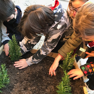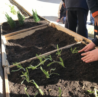 Aquesta darrera setmana, l'alumnat de 4t de Primària que participa en el Taller de Cuina Sostenible ha plantat l'hort pensat per aquesta activitat: un hort fet totalment amb material reutilitzat. A més, han fet servir els 300L de compost que ens va cedir l'Ajuntament de Barcelona a través de la Xarxa d'Escoles + Sostenibles. Molt destacable el rètol de l'hort, una col·laboració de la Belen del Castillo, mestra de plàstica de l'Escola Thau Barcelona.